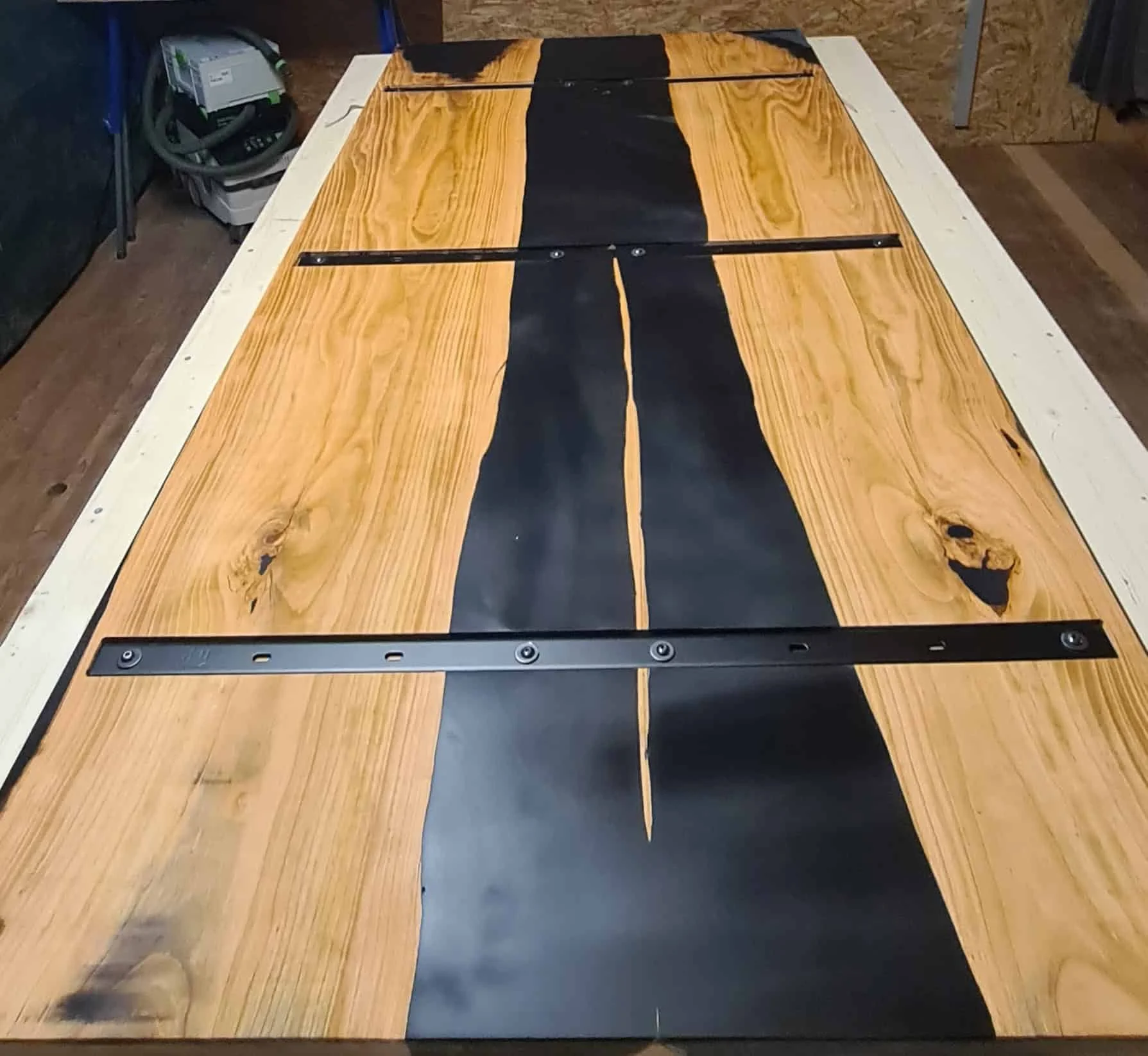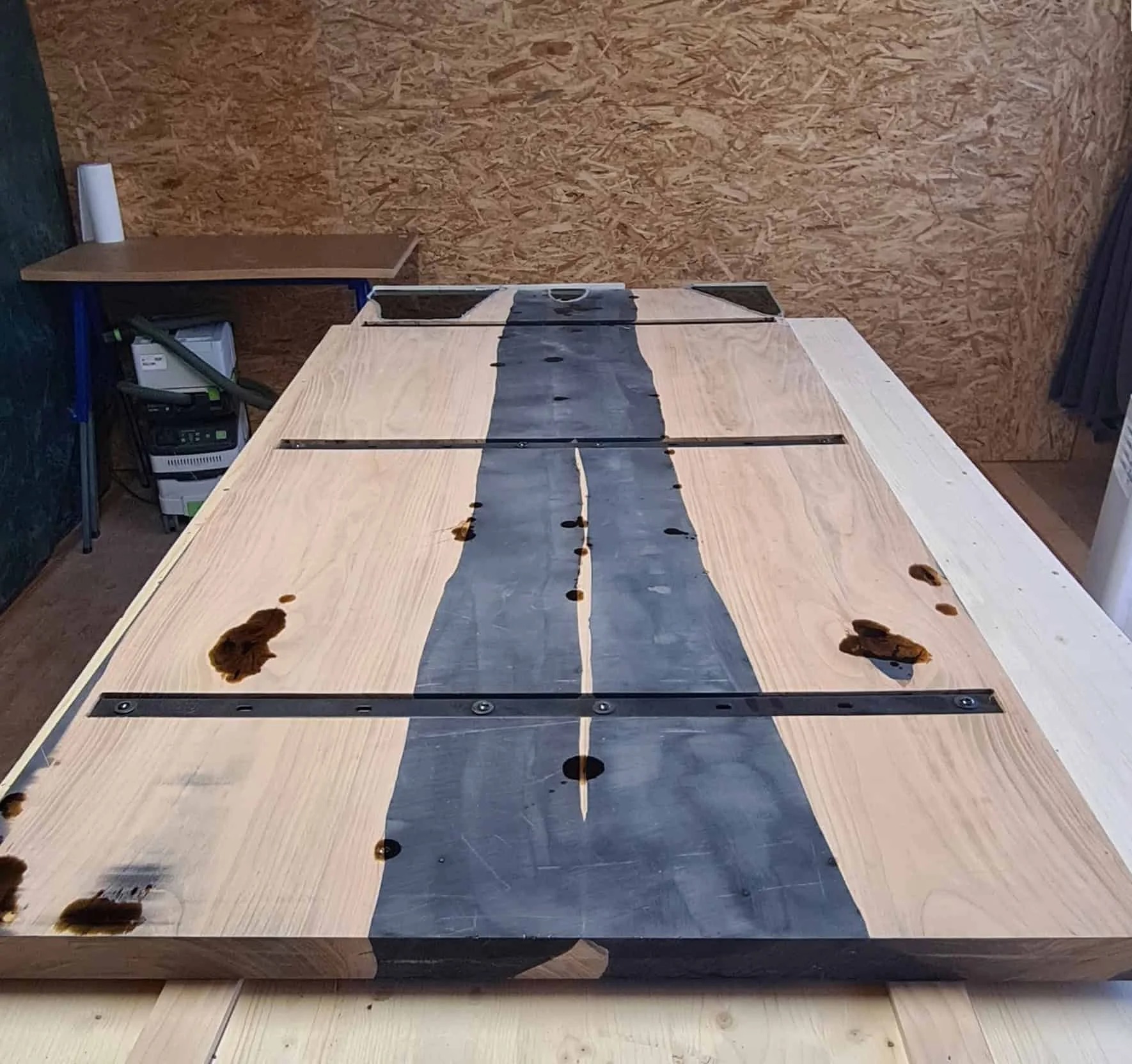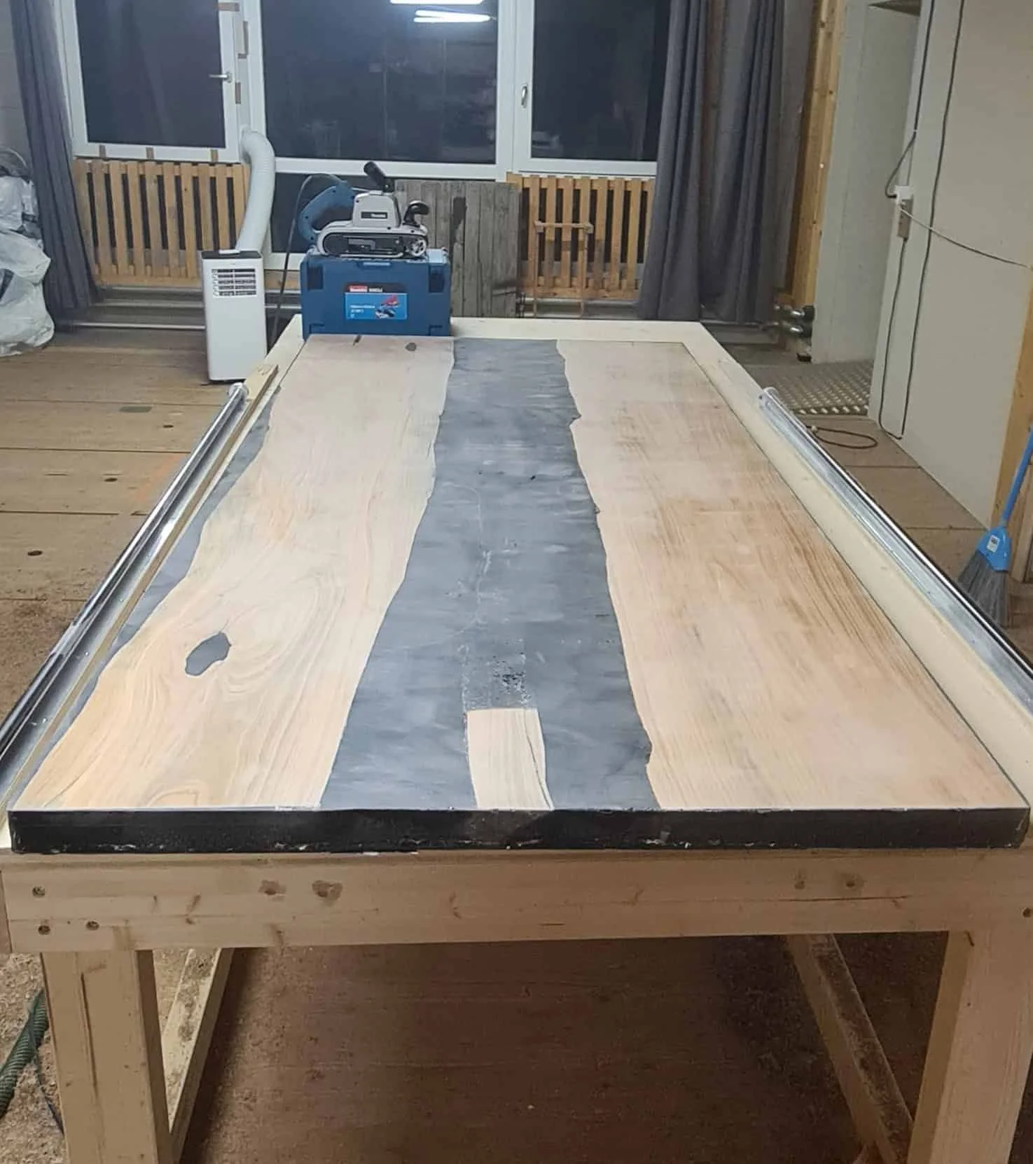 After curing, the table is flattened and cut to size